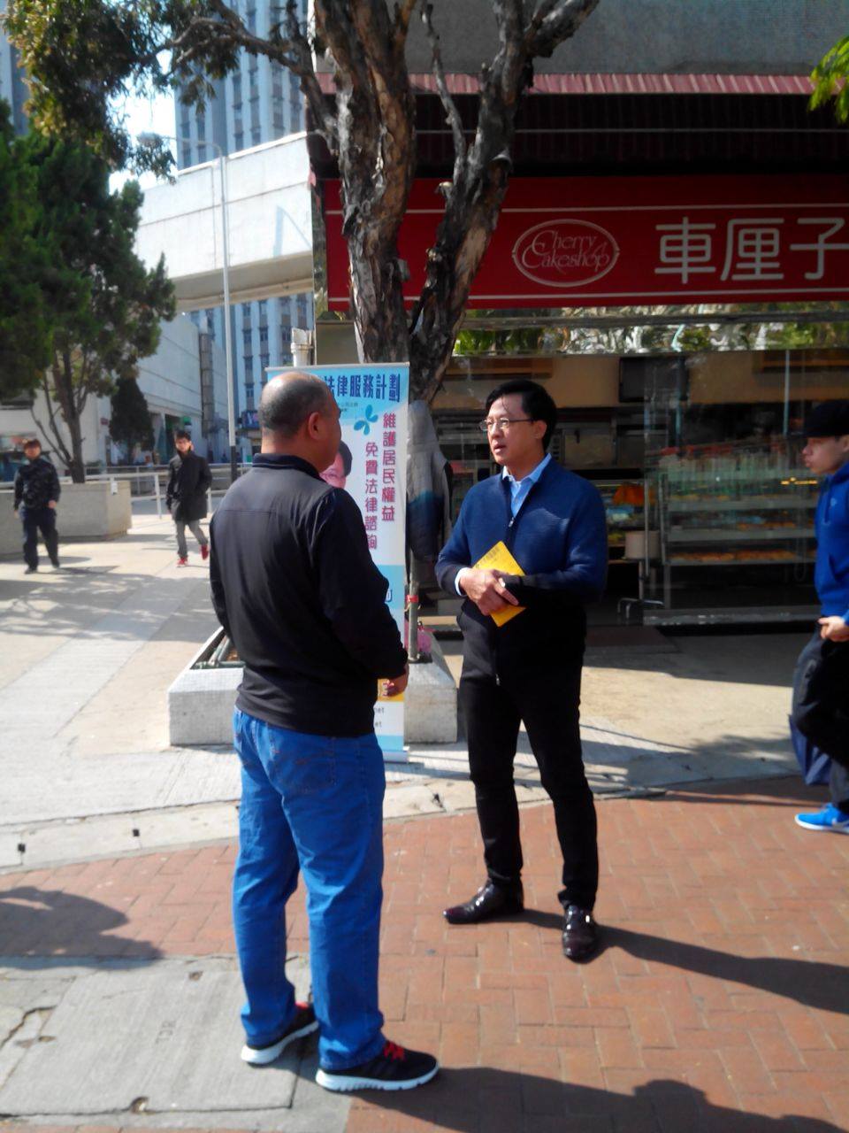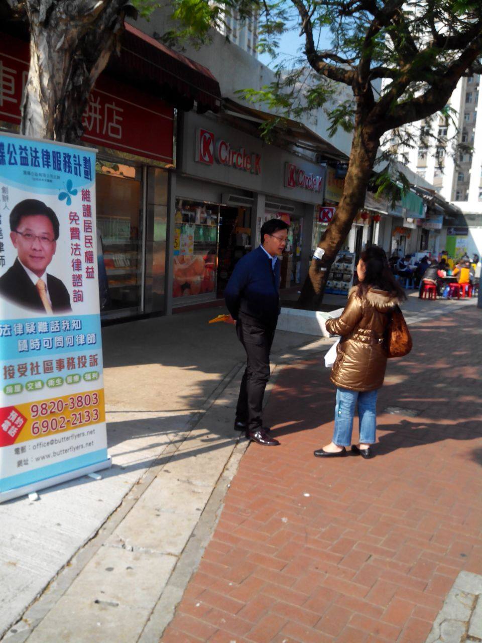 雖然近日天氣持續寒冷,但匯蝶公益的街站服務依然由何君堯律師走到街上為廣大的街坊服務。